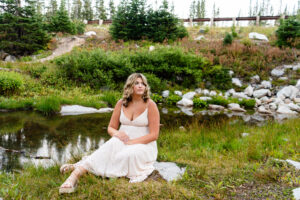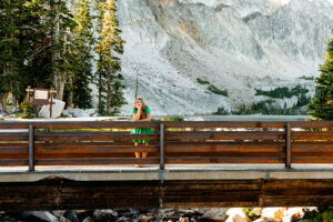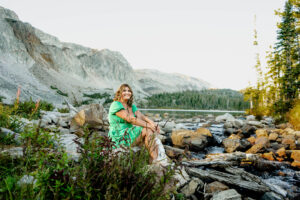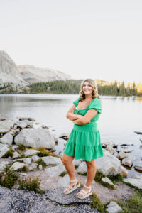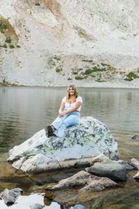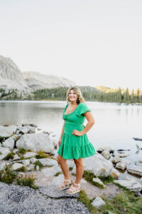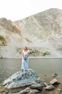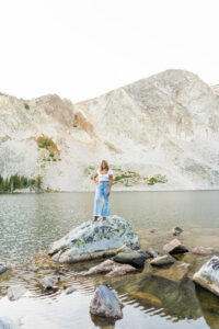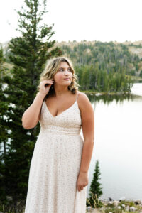After arriving at Lake Marie at about 10,500 feet elevation, Weatherly changed into her second outfit. As the sun was beginning to set and Lindsay wasted no time in taking advantage of the scenery. As I took pictures and a few videos as the second shooter, it was so much fun seeing Lindsay enjoying the mountain features. You can see the breath taking view of the lake, trees and mountain peaks in the background.