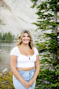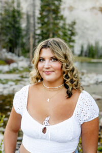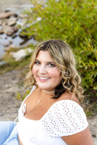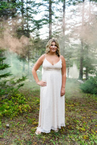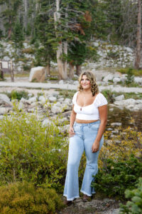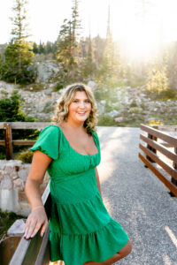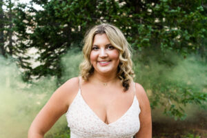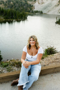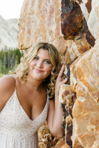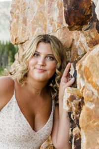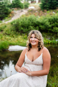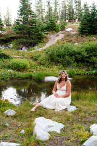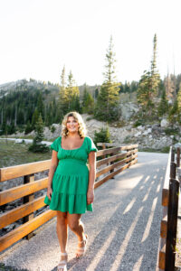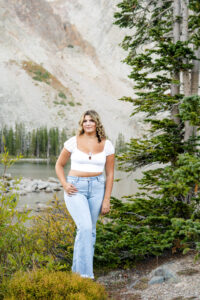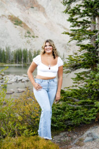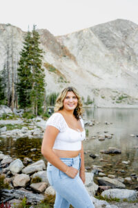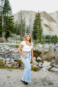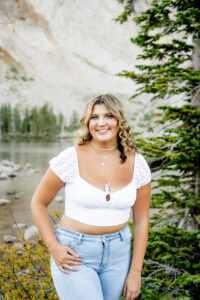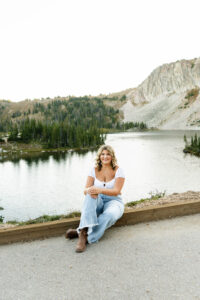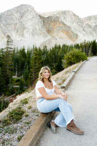 With the sun dropping quickly behind the mountains, we continued on deeper into the trees and along the path capturing pictures in her white top and blue jeans. For Weatherly’s final outfit change, she was able to take advantage of our pop-up changing tent right in the middle of the mountains. After changing, we began taking our final pictures of the session, saving the fun ones for the last. To finish, with tradition of all our seniors, we pop open some smoke bombs and filled the forest scenery with Weatherly’s favorite color of smoke.